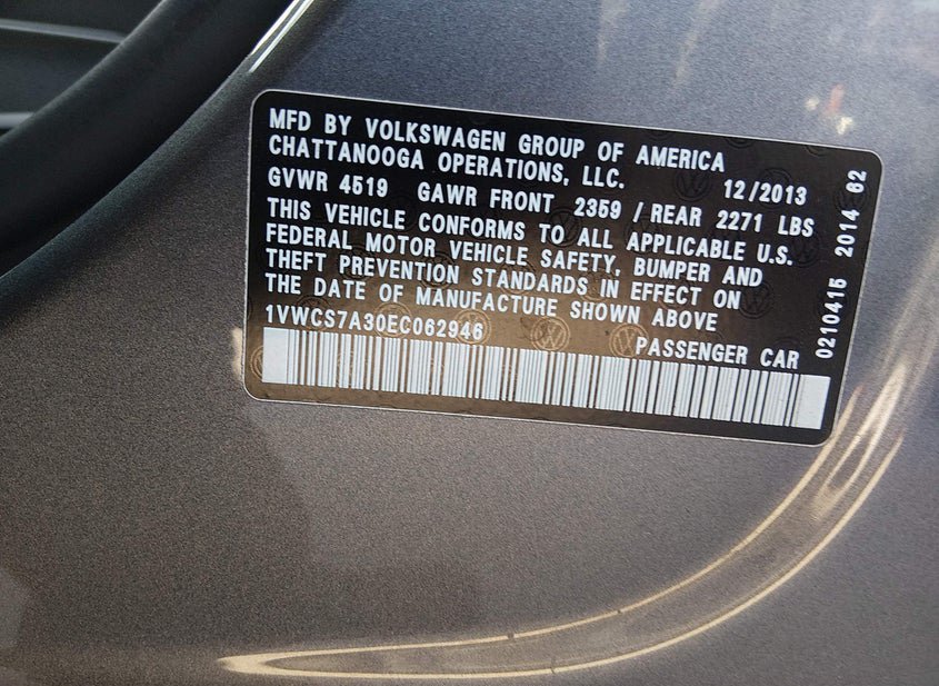 - VIN: 1VWCS7A30EC062946