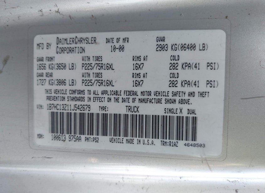 - VIN: 1B7HC13Z11J542679