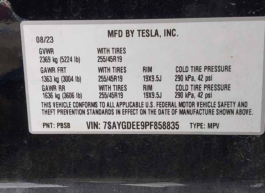 - VIN: 7SAYGDEE9PF858835