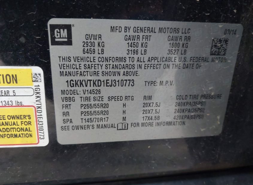 - VIN: 1GKKVTKD1EJ310773