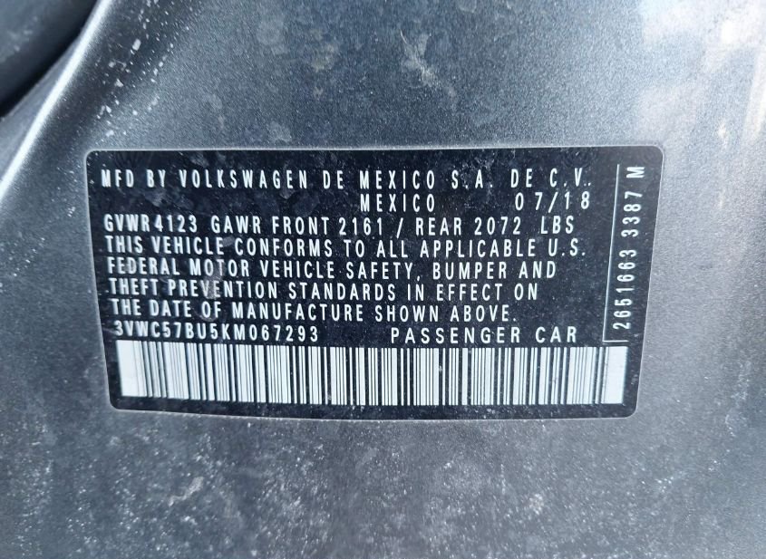 - VIN: 3VWC57BU5KM067293
