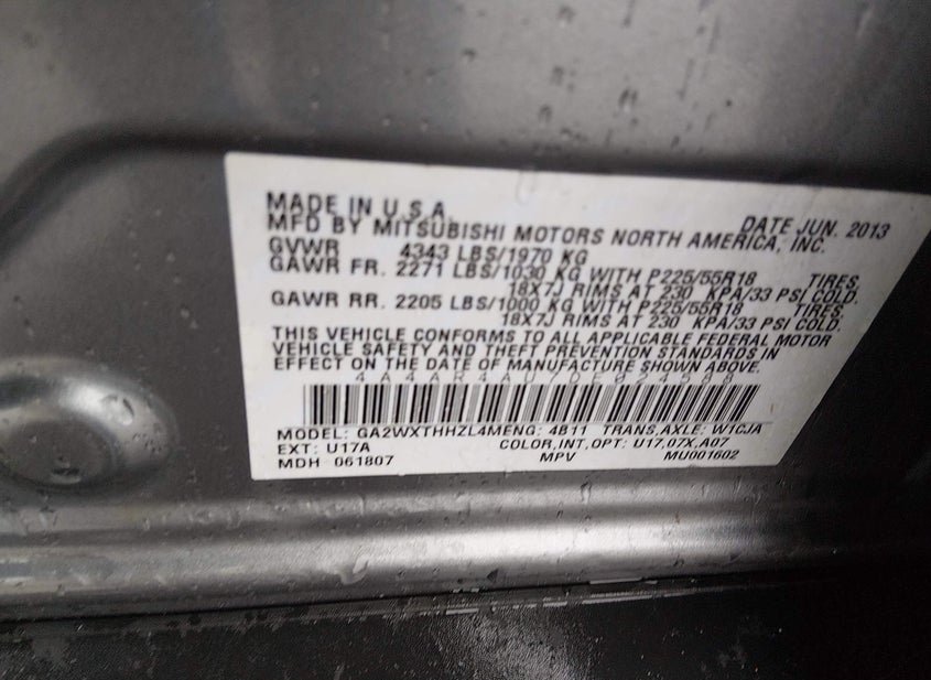 - Название лота: 2013 MITSUBISHI OUTLANDER SPORT SE