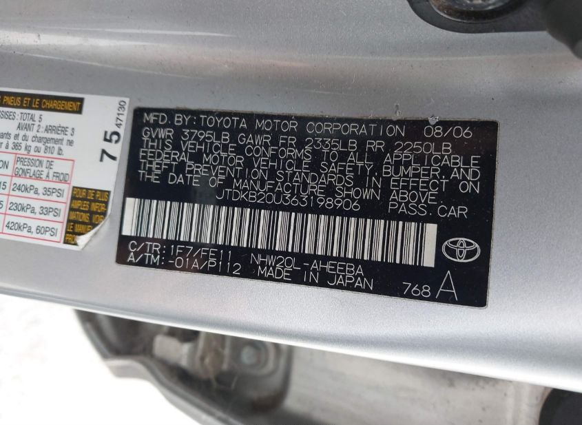 - VIN: JTDKB20U363198906