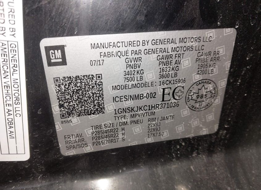- VIN: 1GNSKJKC1HR371036
