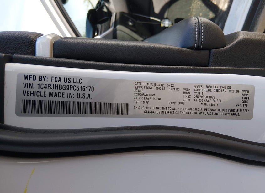 - VIN: 1C4RJHBG9PC516170