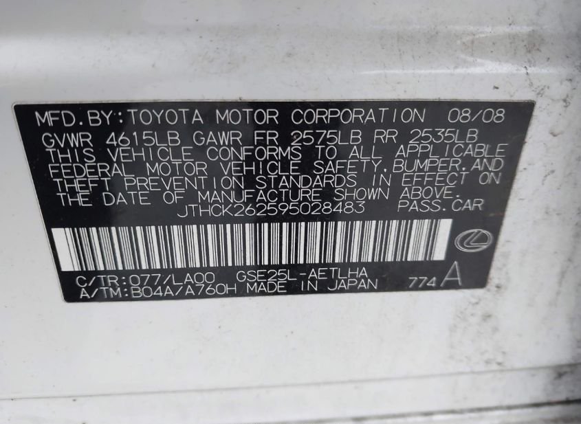 - VIN: JTHCK262595028483