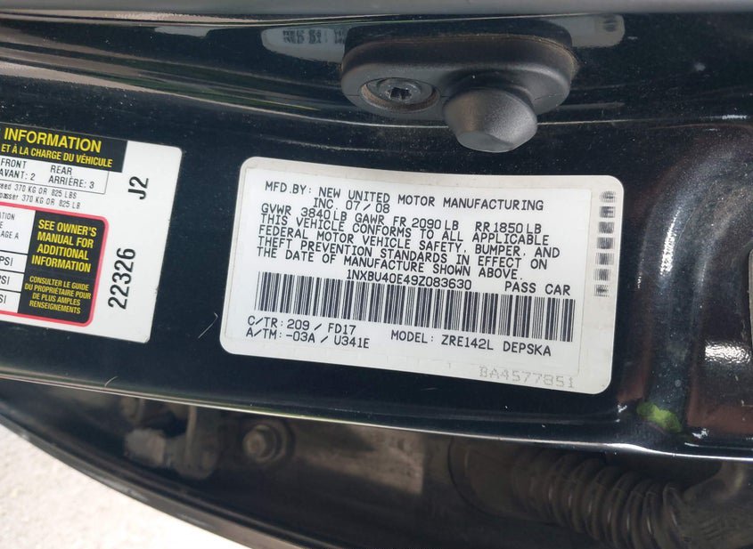 - VIN: 1NXBU40E49Z083630