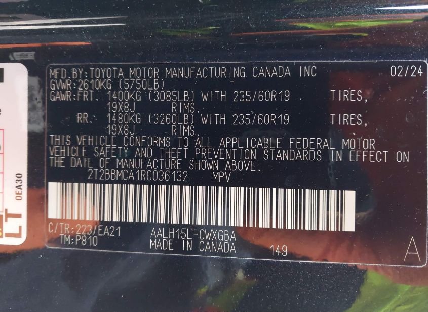 - VIN: 2T2BBMCA1RC036132