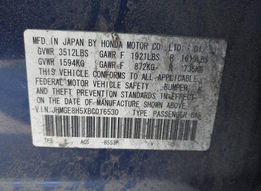 - VIN: JHMGE8H5XBC016530