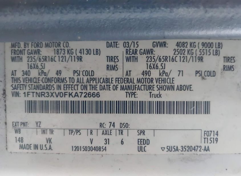 - VIN: 1FTNR3XV0FKA72666