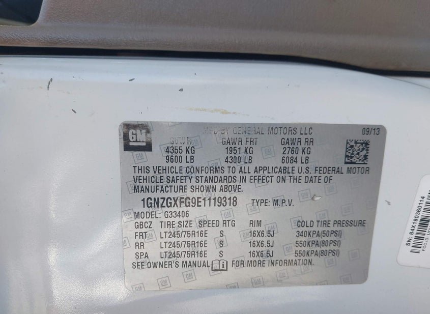 - VIN: 1GNZGXFG9E1119318