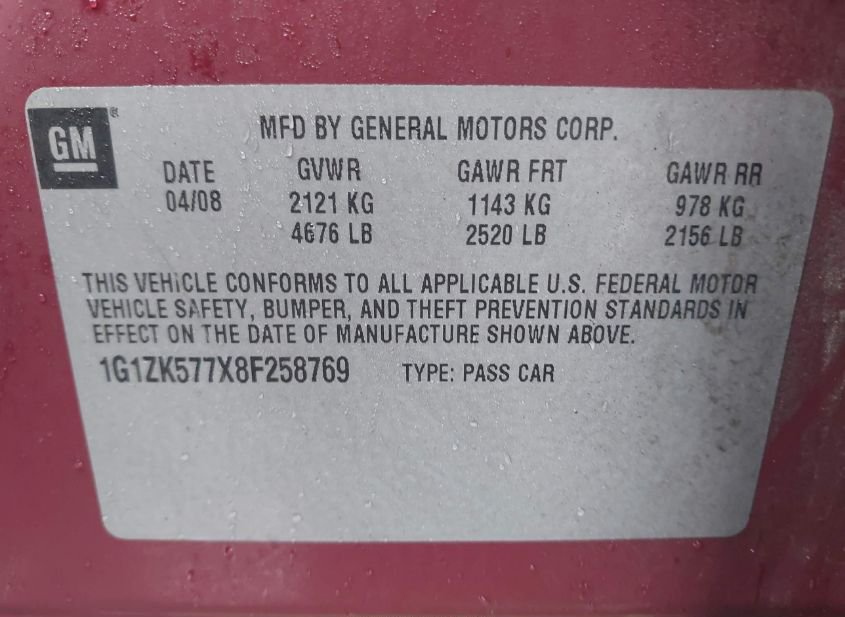 - VIN: 1G1ZK577X8F258769