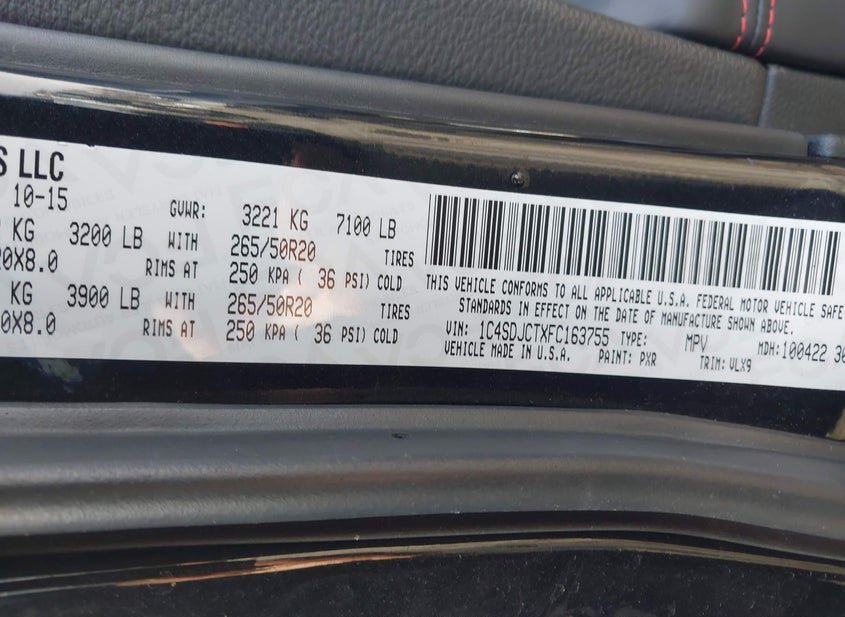 - VIN: 1C4SDJCTXFC163755