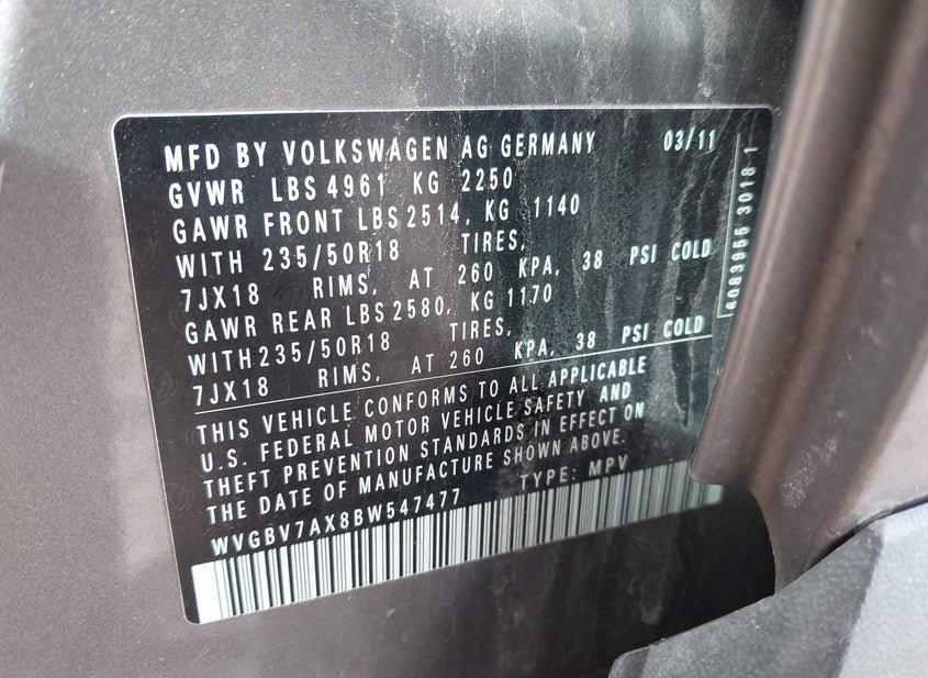 - VIN: WVGBV7AX8BW547477