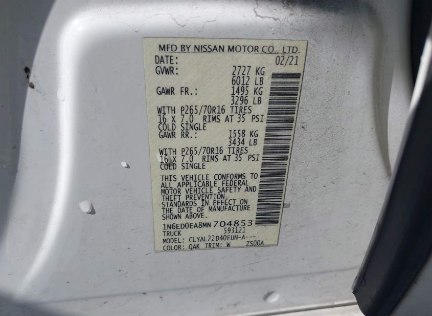 - VIN: 1N6ED0EA8MN704853