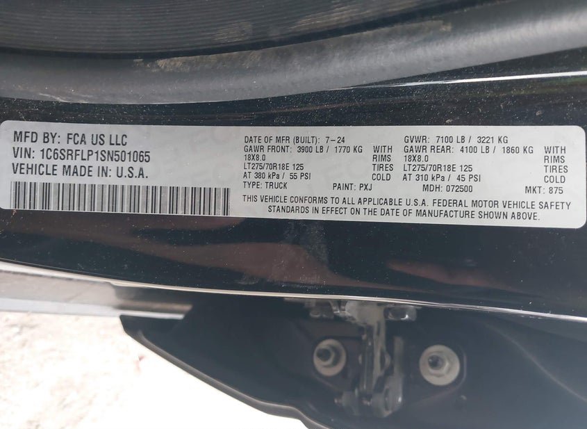 - VIN: 1C6SRFLP1SN501065