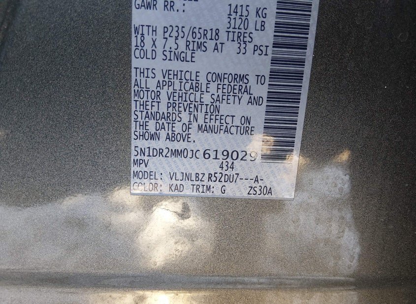 - VIN: 5N1DR2MM0JC619029