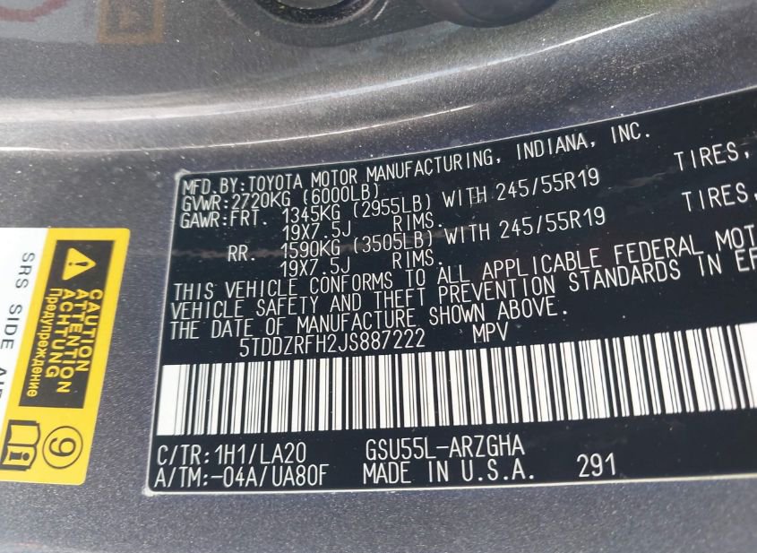 - VIN: 5TDDZRFH2JS887222