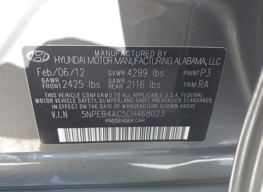 - VIN: 5NPEB4AC5CH468023