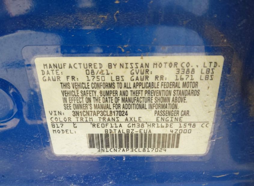 - VIN: 3N1CN7AP3CL817024