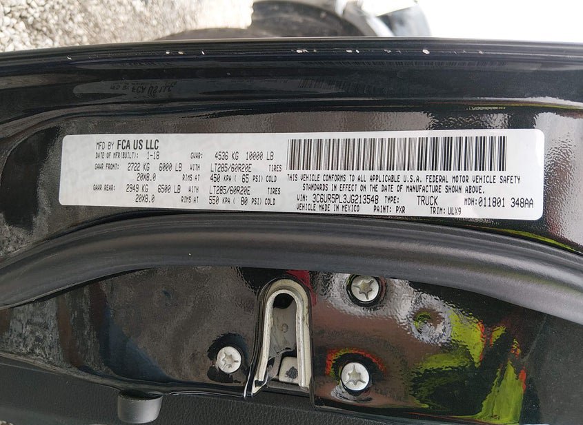 - VIN: 3C6UR5PL3JG213548