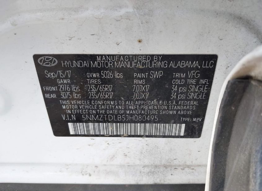 - VIN: 5NMZTDLB5JH080495
