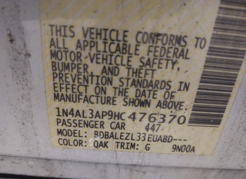 - VIN: 1N4AL3AP9HC476370