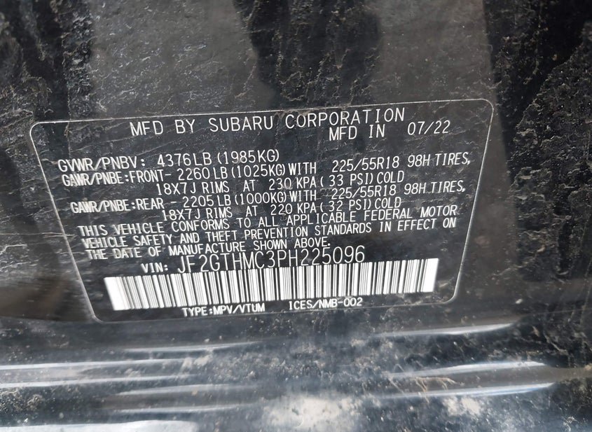 - VIN: JF2GTHMC3PH225096