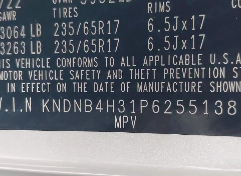- VIN: KNDNB4H31P6255138