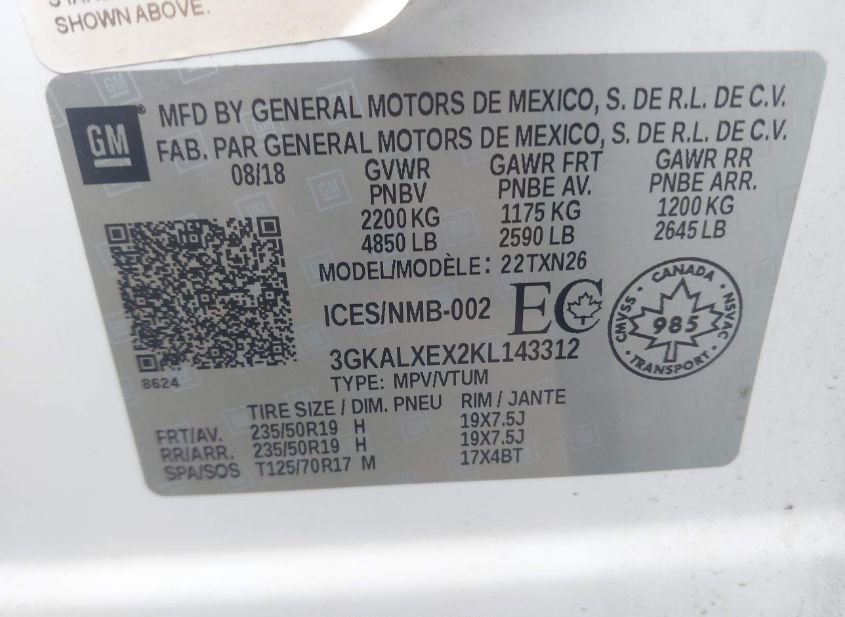 - VIN: 3GKALXEX2KL143312