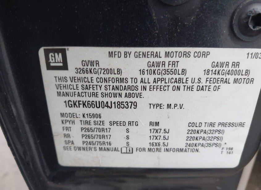 - VIN: 1GKFK66U04J185379