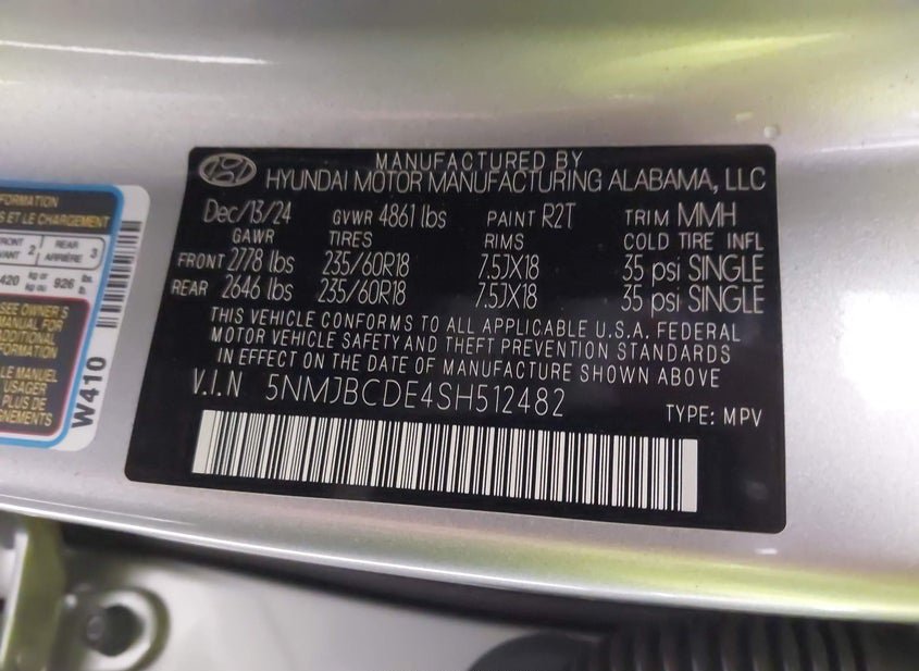 - VIN: 5NMJBCDE4SH512482