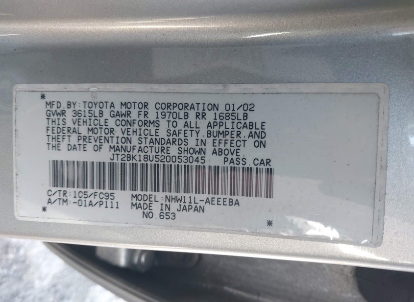 - VIN: JT2BK18U520053045