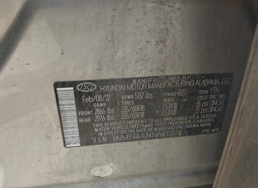 - VIN: 5NMS34AJ4NH431379