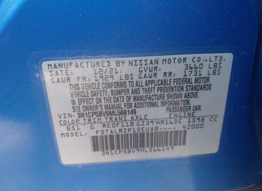 - VIN: 3N1CP5BV9ML566149