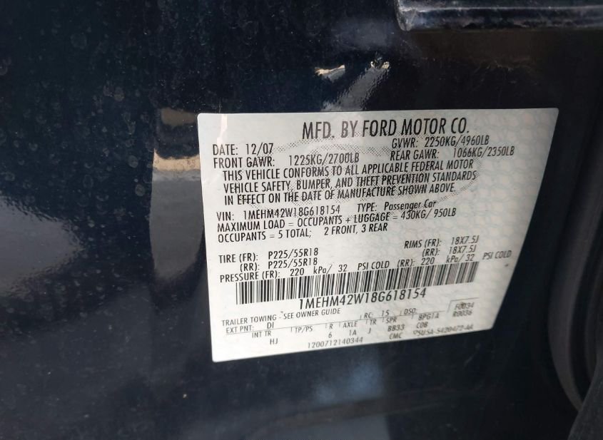 2008 MERCURY SABLE PREMIER