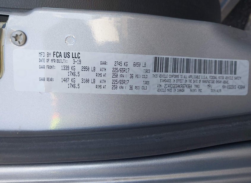 - VIN: 2C4RDGEG4KR674364