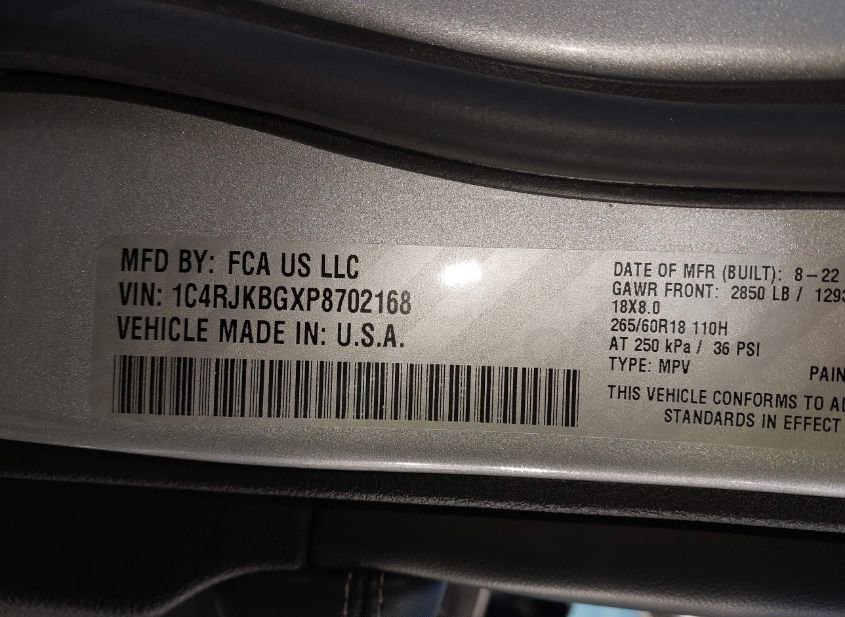 - VIN: 1C4RJKBGXP8702168