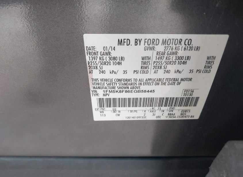 - VIN: 1FM5K8F86EGB58445
