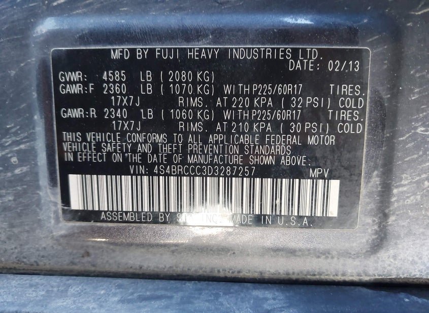 - VIN: 4S4BRCCC3D3287257