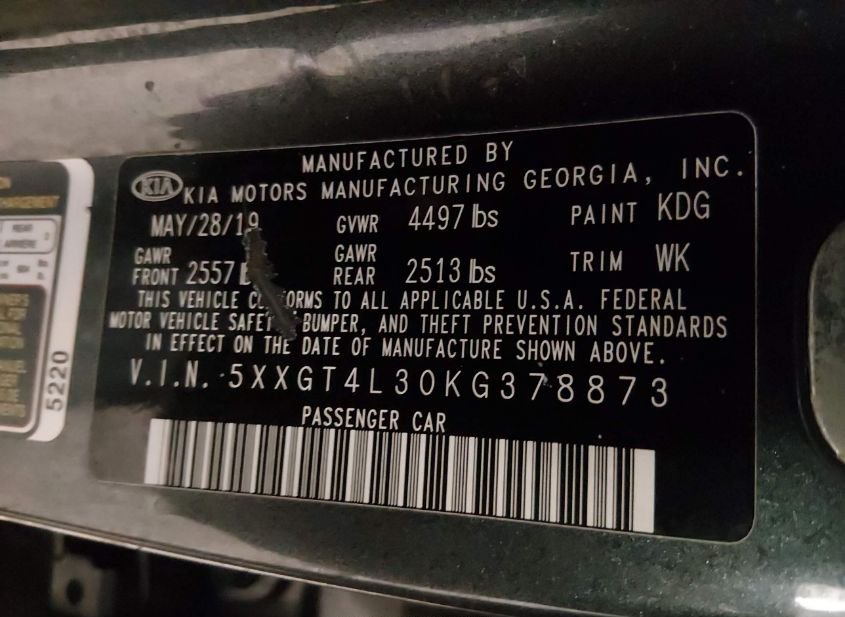 - VIN: 5XXGT4L30KG378873