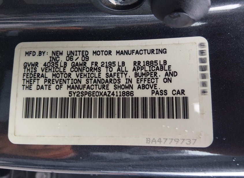 - VIN: 5Y2SP6E0XAZ411886