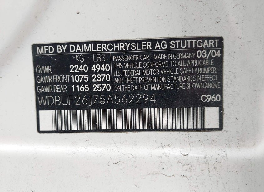 - VIN: WDBUF26J75A562294