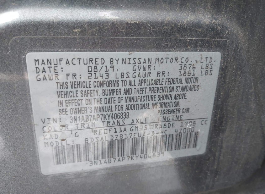 - VIN: 3N1AB7AP7KY406839