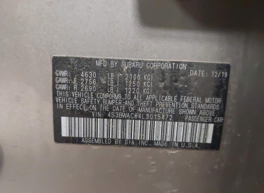 - VIN: 4S3BWAC64L3015472