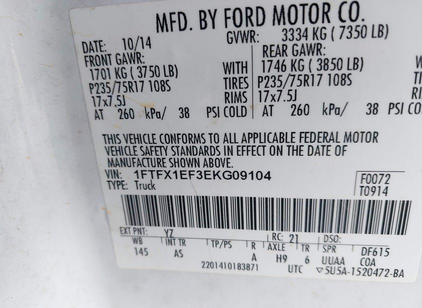 - VIN: 1FTFX1EF3EKG09104