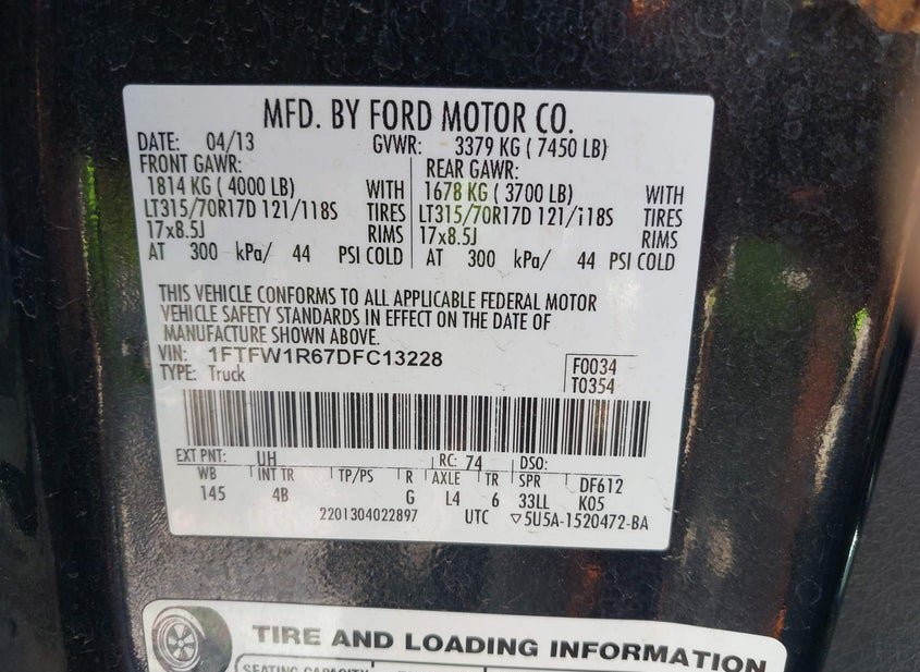 - VIN: 1FTFW1R67DFC13228