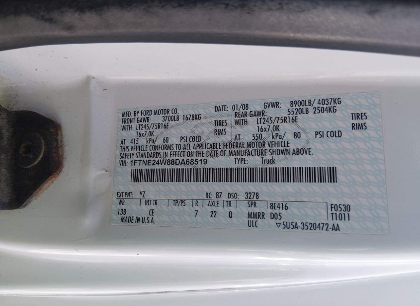 - VIN: 1FTNE24W88DA68519