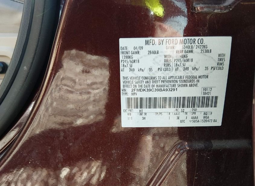 - VIN: 2FMDK39C39BA93291