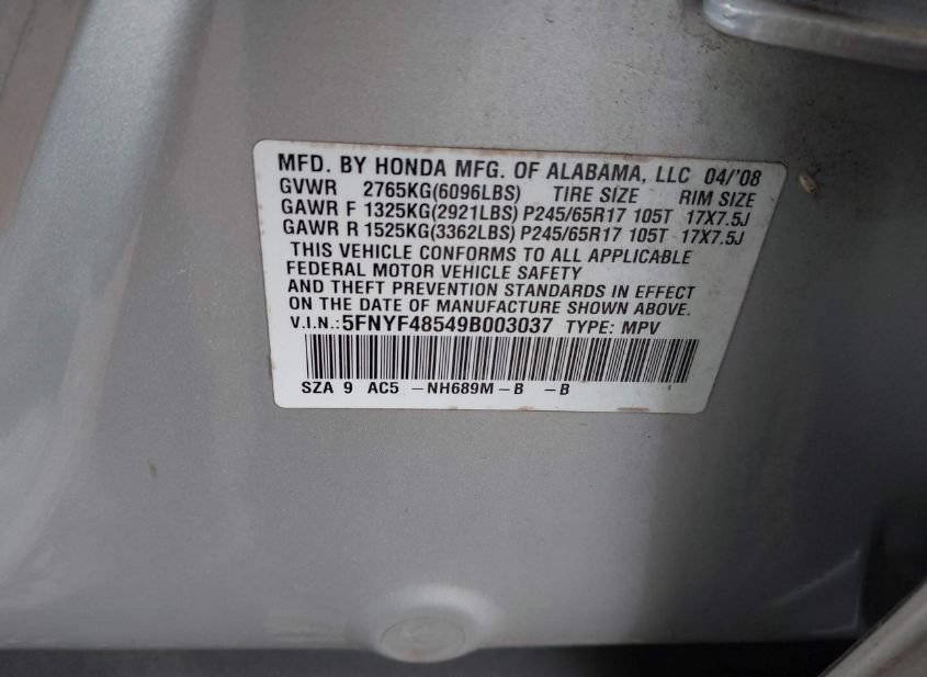 - VIN: 5FNYF48549B003037